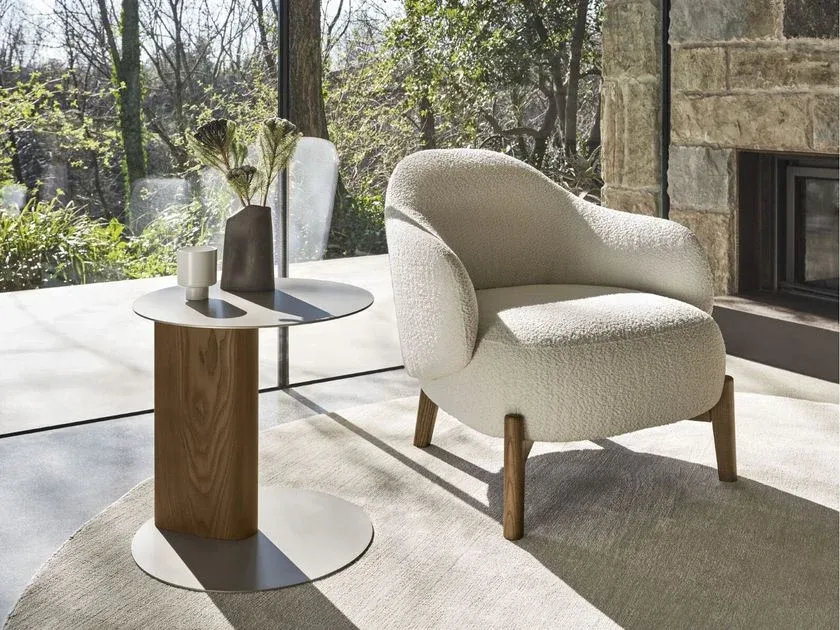 Key Features This armchair showcases a soft cream fabric upholstery on a generously padded backrest and seat, providing exceptional comfort for lounging. It rests on a sturdy solid…
